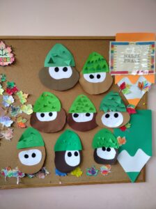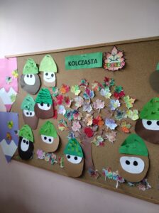 Po powrocie do szkoły dzieci wykonały jesienne kasztany z papieru.